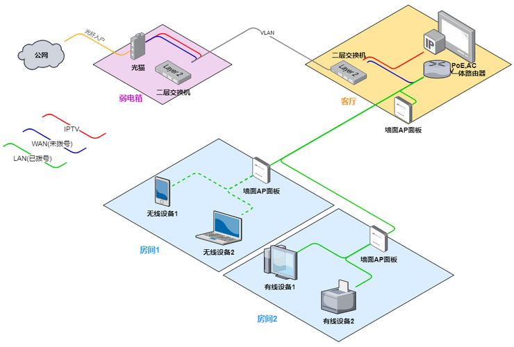 網(wǎng)絡(luò)布線(xiàn)拓?fù)鋱D是指在設(shè)計(jì)和實(shí)施網(wǎng)絡(luò)時(shí),根據(jù)網(wǎng)絡(luò)需求和實(shí)際情況,將各個(gè)設(shè)備之間的連接方式和物理結(jié)構(gòu)以圖形的形式展現(xiàn)出來(lái)的一種工具。它不僅可以直觀地展示網(wǎng)絡(luò)結(jié)構(gòu),還能幫助網(wǎng)絡(luò)管理員進(jìn)行故障排查和優(yōu)化網(wǎng)絡(luò)性能。以下是幾種常見(jiàn)的網(wǎng)絡(luò)布線(xiàn)拓?fù)鋱D方法: